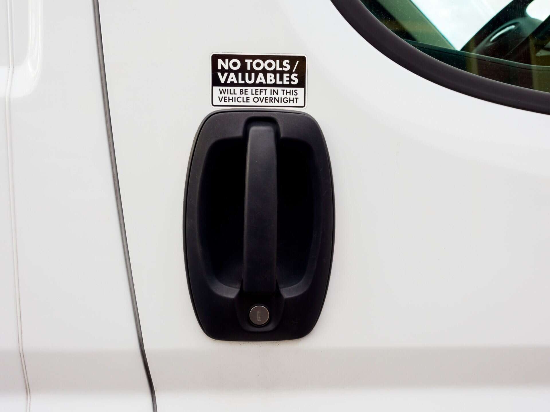 3) Use visible warnings. A simple “no tools left in this van overnight” sign reduces opportunist attempts. Selecta Dna and police guidance recommend clear signage as part of a layered approach. (selectadna.co.uk)